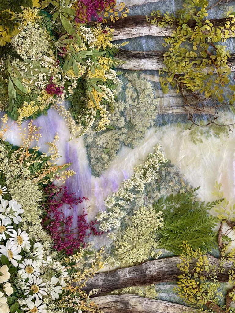 風景の押し花額が出来上がりました。奥行きの有る、壮大な作品ですね。光や影が上手に作られて綺麗な小花も入り、穏やかになれる作品ですね。