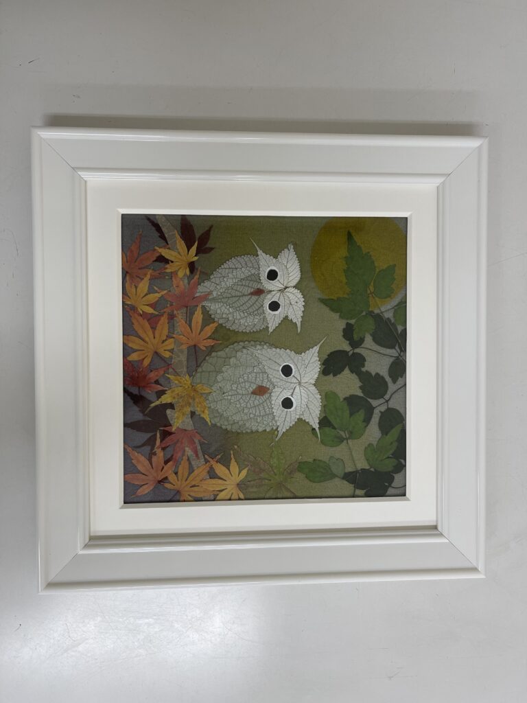 投稿日: 2025年12月15日 投稿者: ラッキー横浜読売カルチャー不思議な花倶楽部押し花教室、彩りの色、相模原押し花サークル フクロウの額を作っていただきました。親子のフクロウ2羽並んで、紅葉狩りでしょうか?季節を感じる素敵な作品ですね。ビッグムーンも見ていますね。 ・ 横浜、町田、相模原、座間、厚木で 押し花教室を開催しております。・ ワンデーレッスンも行っています。 授業料:1回2時間2,000円、材料費:小物1,000円程度・ 日時はご相談ください。・ 押し花体験レッスンもしております。詳細はこちらから。・ お問い合わせはこちらから。